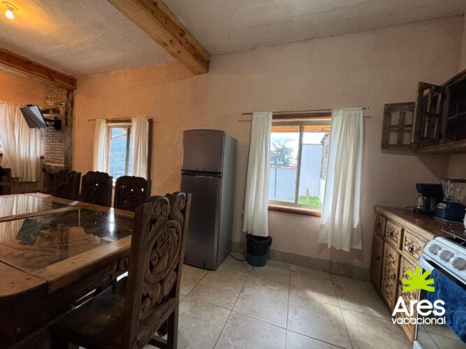 Equipada con: Calentador de gas, todos los servicios, TV con Sky, asador, ropa de cama y edredones, chimenea, cocina integral equipada con utensilios y aparatos electrodomésticos, y asador personal.